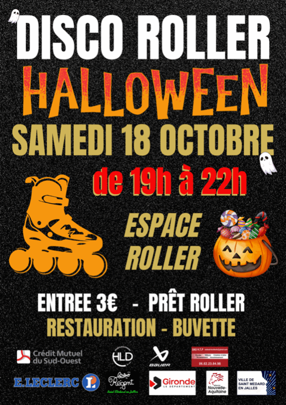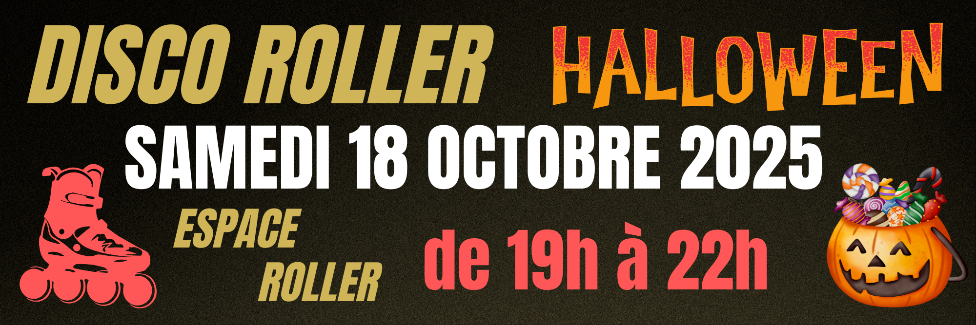 Cette année, la DISCO ROLLER D’HALLOWEEN aura lieu le Samedi 18 octobre 2025 de 19h à 22h !!!
