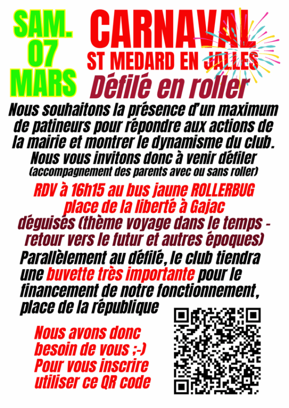 Comme chaque année, le club participera le samedi 07 mars prochain, au défilé du CARNAVAL de St Médard en Jalles.