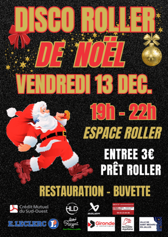Cette année, la DISCO ROLLER DE NOËL aura lieu le samedi 13 décembre 2025 de 19h à 22h !!!